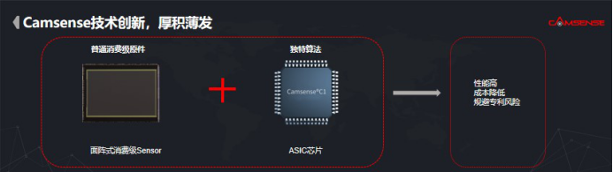 首先,歡創(chuàng)科技采用面陣式消費級Sensor芯片+自主研發(fā)圖像處理ASIC芯片的技術(shù)路線,可以避免使用成本高昂的通用FPGA芯片,通過這次創(chuàng)新,我們建立了相對的行業(yè)壁壘,由此我們成為了市面上唯一一家量產(chǎn)面陣式Sensor結(jié)構(gòu)光測距方法的公司。