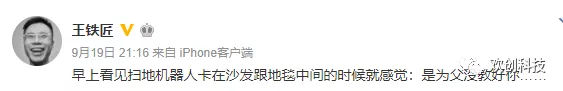 18年9月,王欣微博發(fā)了這樣一條,網(wǎng)友評(píng)論紛紛提出猜測(cè)王欣是否復(fù)出后的第一個(gè)戰(zhàn)場(chǎng)在掃地機(jī)器人行業(yè)。這似乎是場(chǎng)預(yù)見,18年10月,王欣的妻子彭鵬女士正式成為了歡創(chuàng)科技的第四大股東。