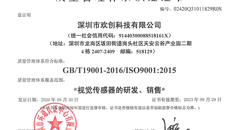 國際權(quán)威認(rèn)證|Camsense歡創(chuàng)科技獲ISO9001質(zhì)量管理體系認(rèn)證