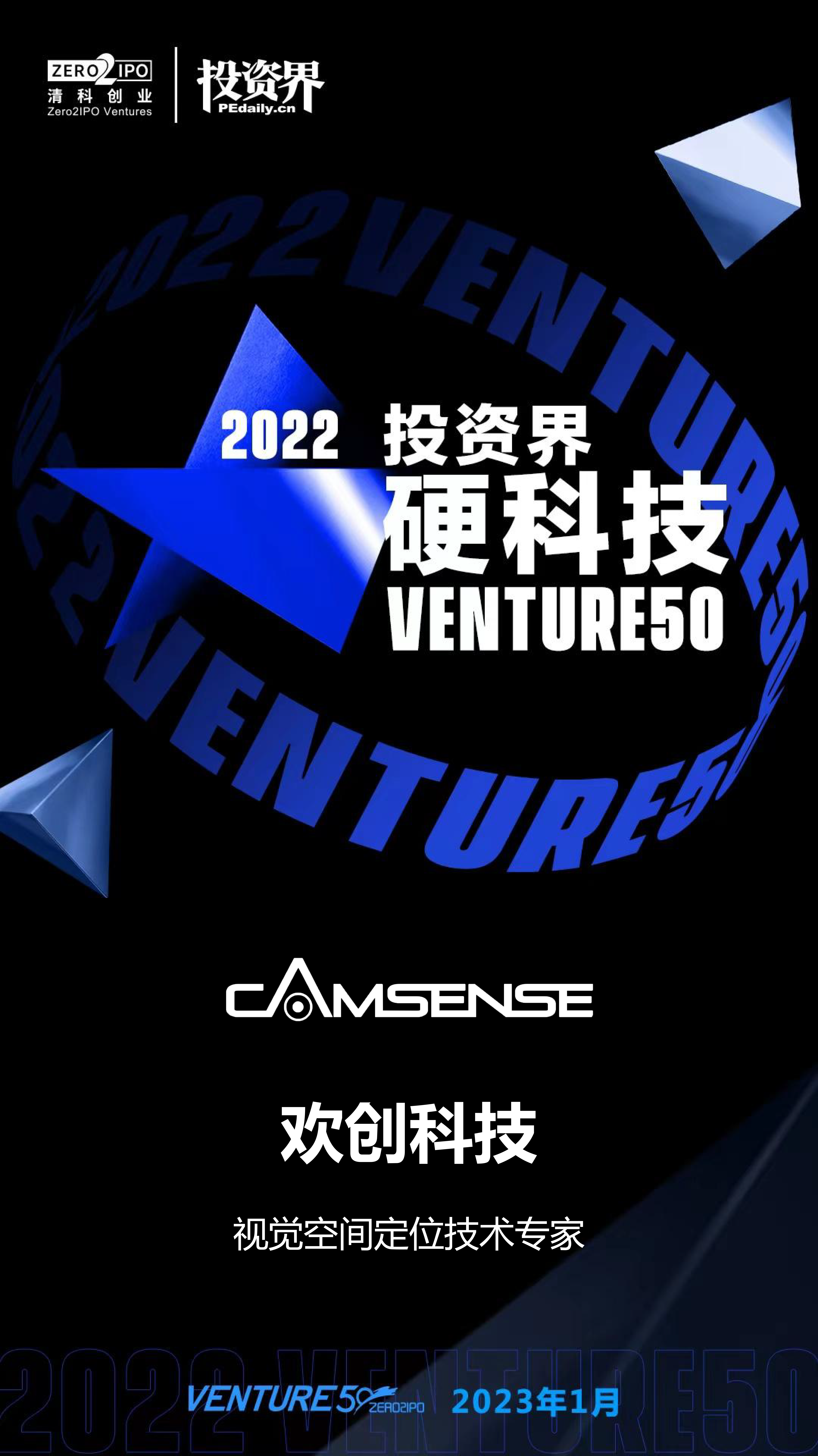 On January 11, 2023, the list of 2022 Venture50 was finally released. CAMSENSE, with its deep cultivation and technological innovation in the field of visual space positioning, has been listed in the list of "2022 High-tech VENTURE50" for the second time.